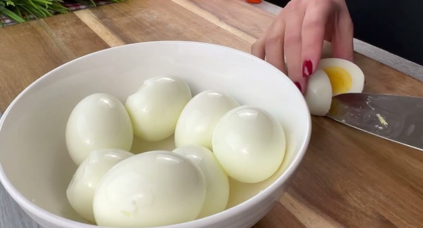 Cut into small cubes boiled eggs, similarly chop cucumber. Finely chop green onions, combine all three ingredients in a salad bowl.