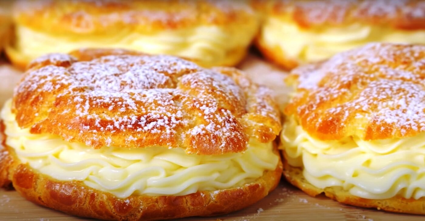 The resulting cakes are cut lengthwise into two parts. The bottom part is smeared abundantly with cream, cover the top of the crust.