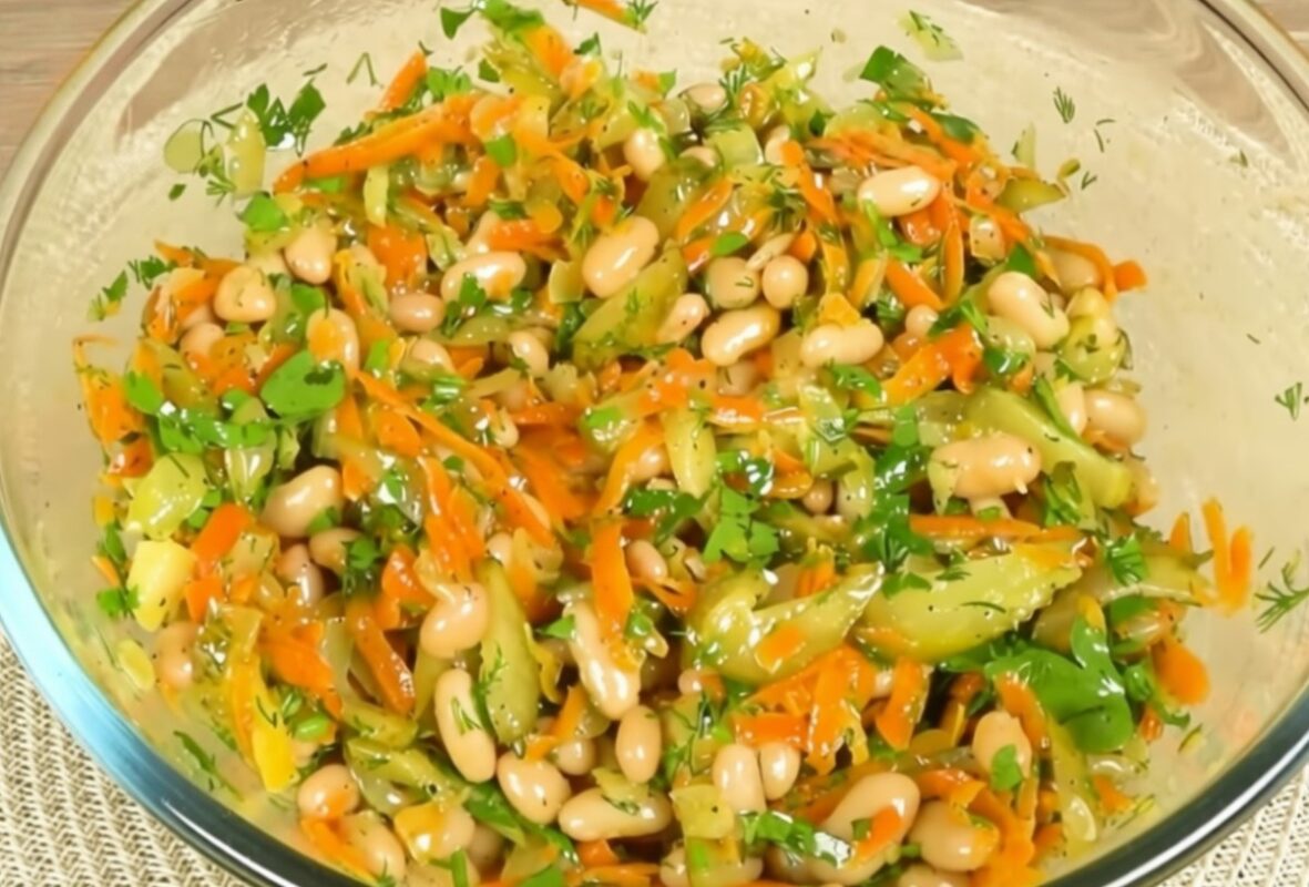 Also, beans are rich in fiber. Together with greens, onions and carrots, the salad becomes especially useful. It should be prepared in the winter period, when it is difficult to gain the daily norm of fiber and vitamins.