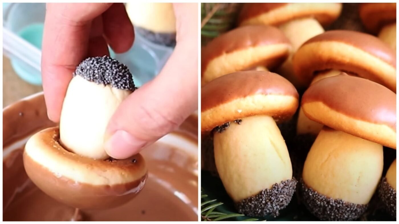 We get sweet original cookies for tea. Such “Mushrooms” can be used as a decoration even for cakes.