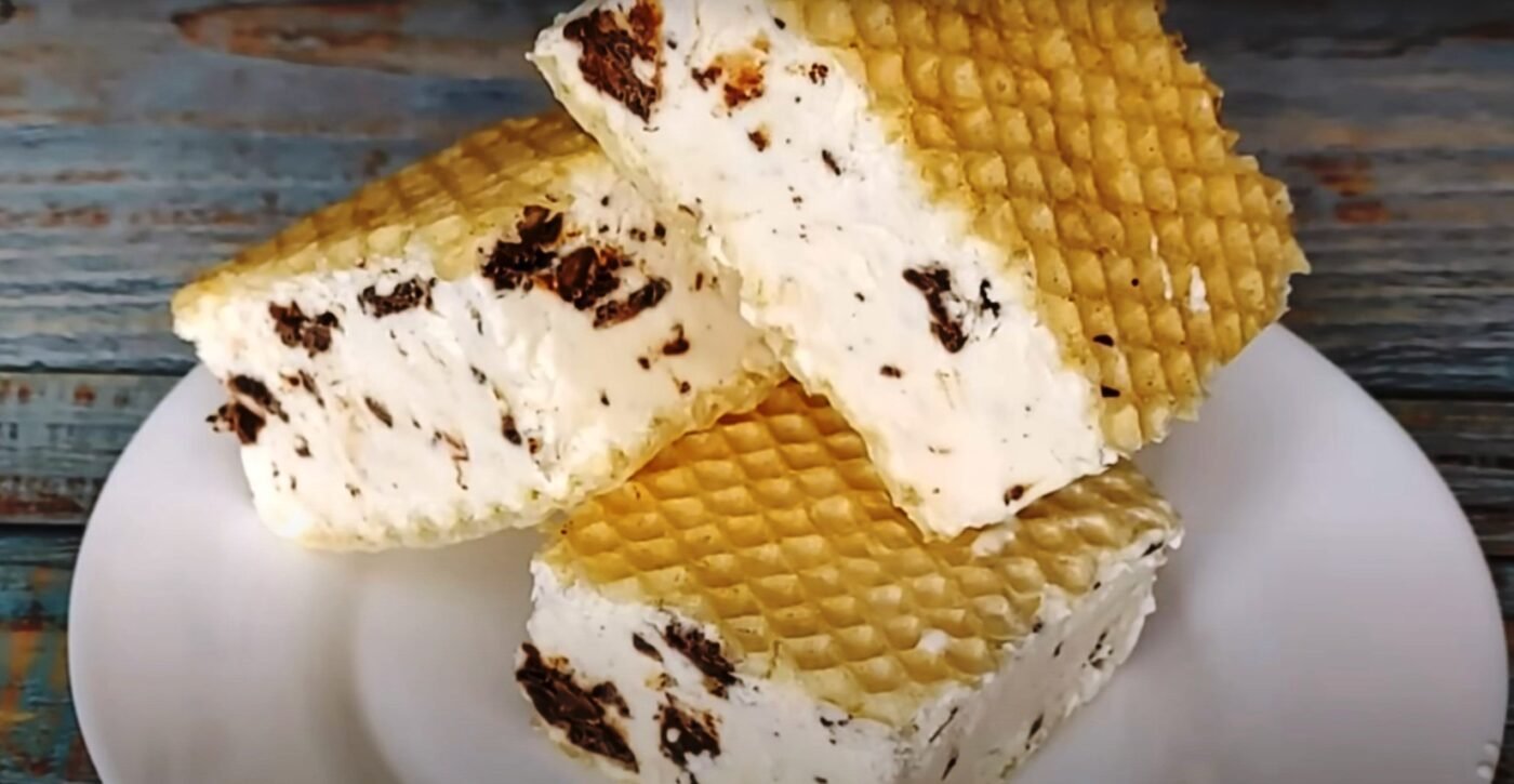 Put the cream mixture on the crust, cover it with the second wafer and press it down slightly. Put the ice cream in the freezer for at least 6 hours.