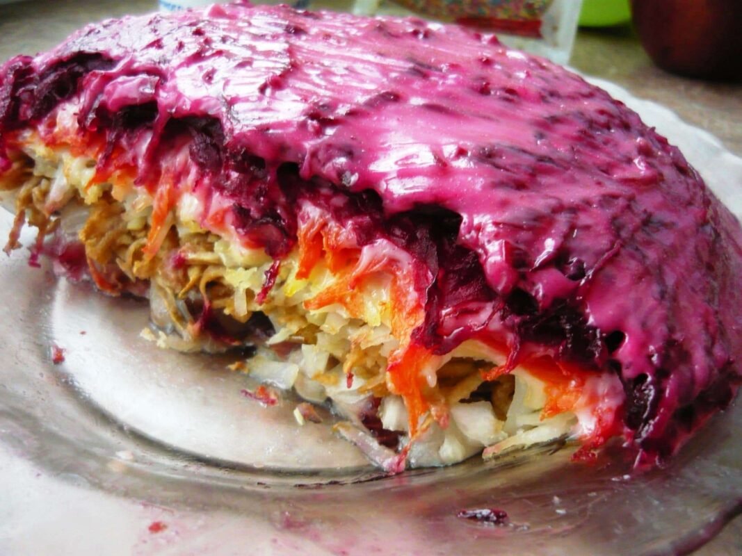 When we make this salad, Herring Under a Fur Coat, only some people make the layers in the order that this salad was conceived. In its majority, such layered salads were invented so that several layers complement each other in flavor.