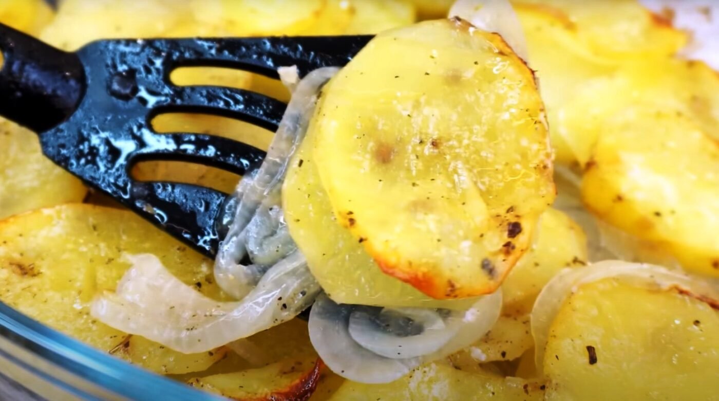On the pillow of onion rings overlap the potatoes. Cover the mold with foil, bake at 180 degrees in the oven for half an hour.