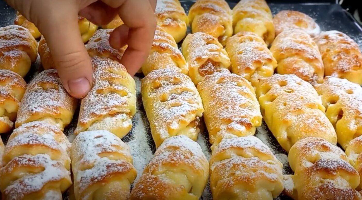 As a result, we have tender and soft rolls with apples. If desired, you can decorate them with powdered sugar after cooking.