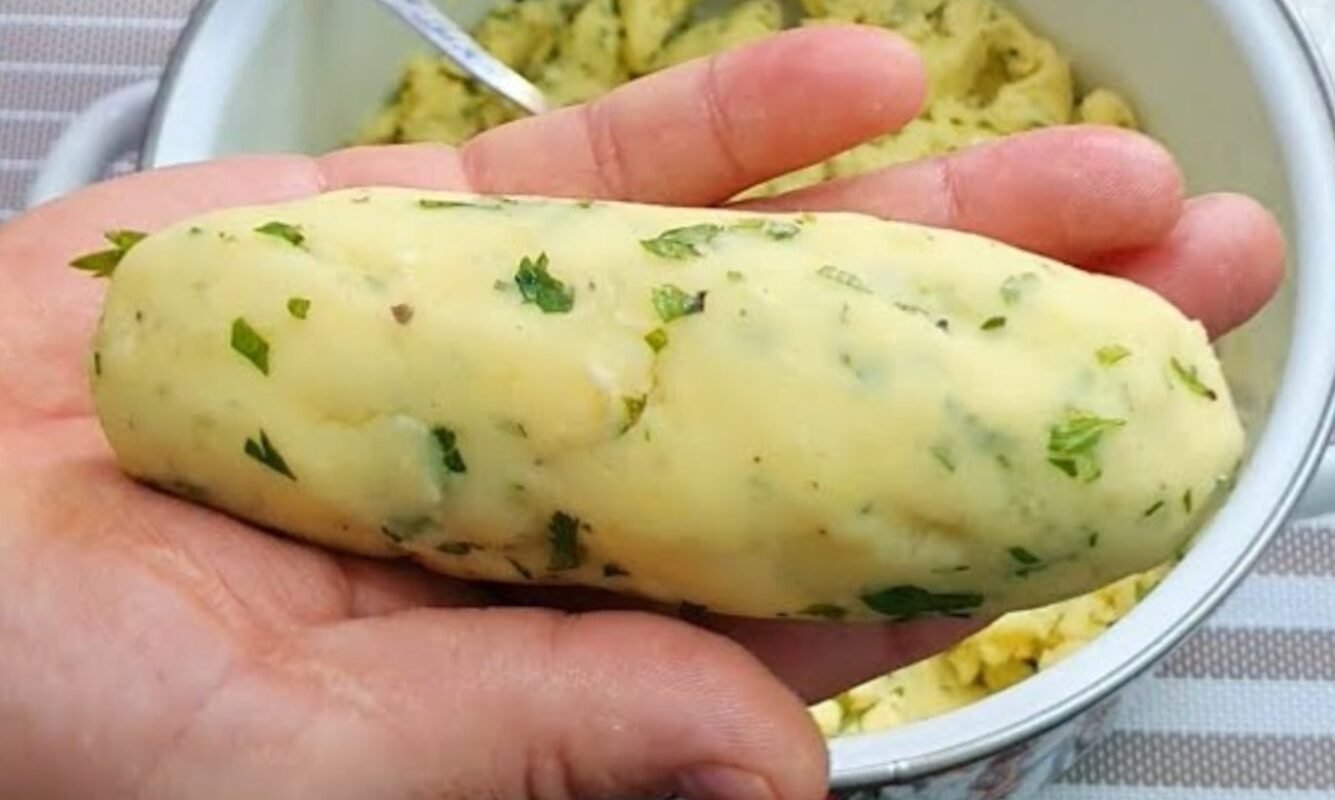 We send to boil 1 kg of potatoes with salt. When ready, turn the potatoes into mashed potatoes. Add one piece of hard butter.