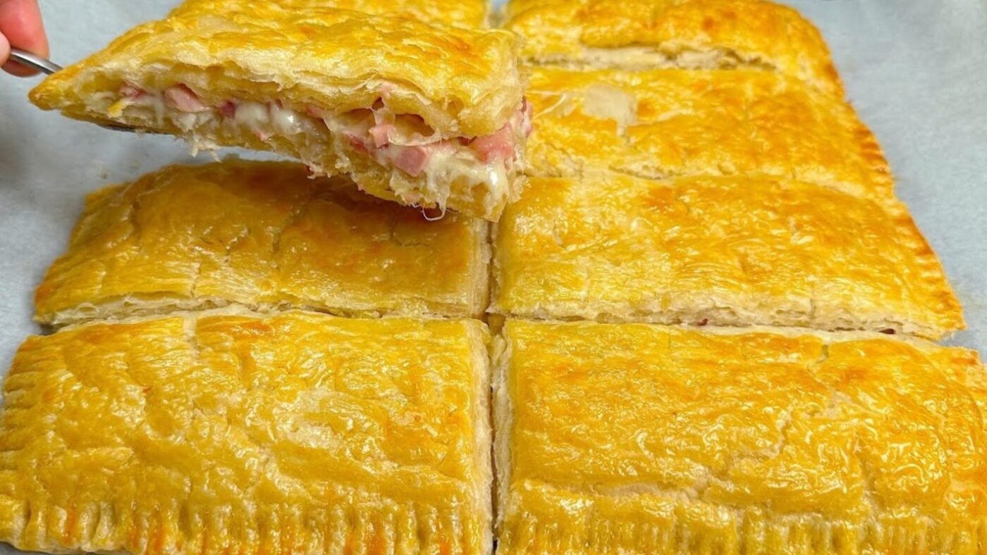 As a result, you get simple pies from puff pastry with ham. The same patties can be made, for example, with minced meat.