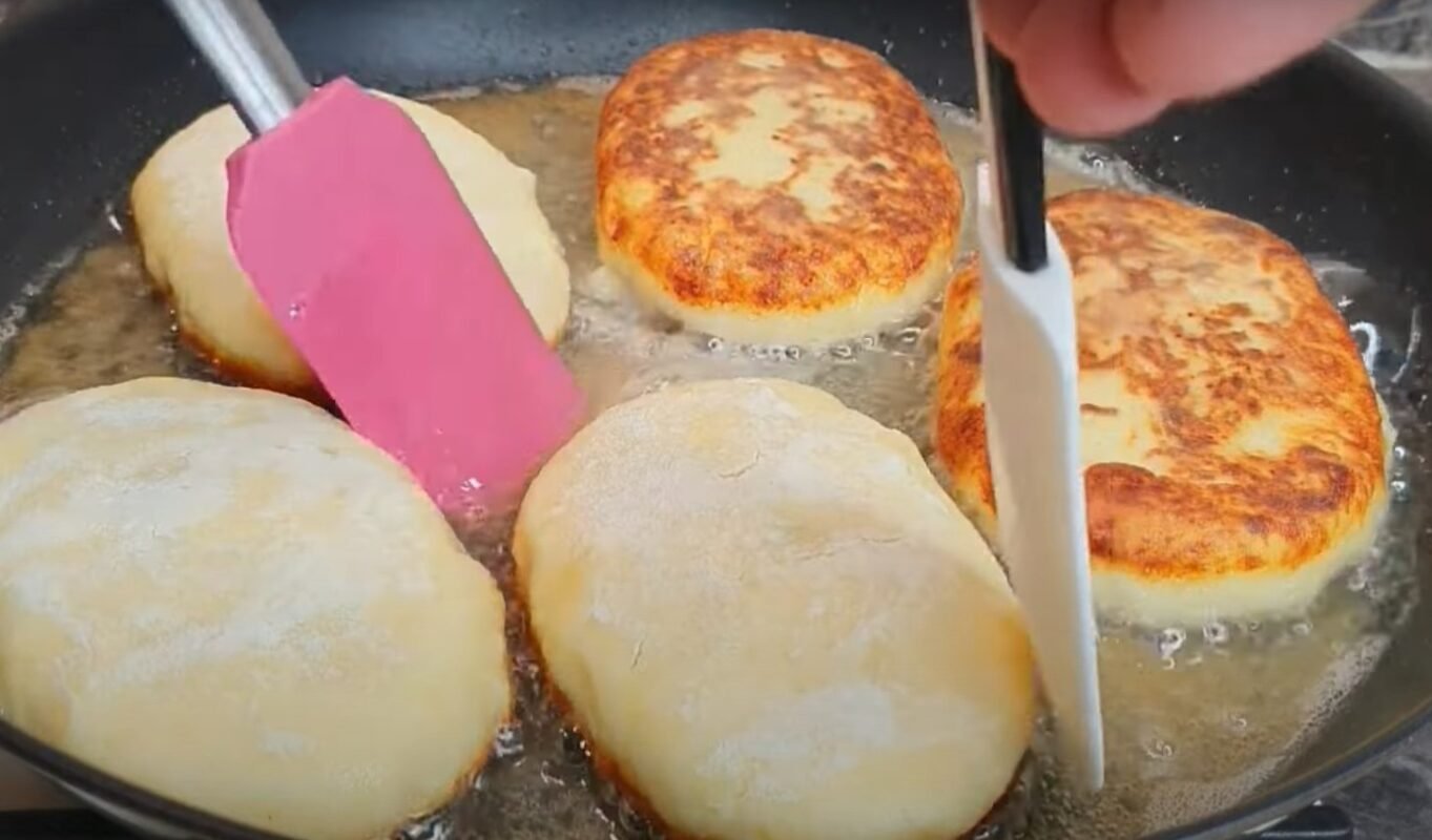 Sprinkle the formed pieces with flour and send them to a frying pan with vegetable oil.