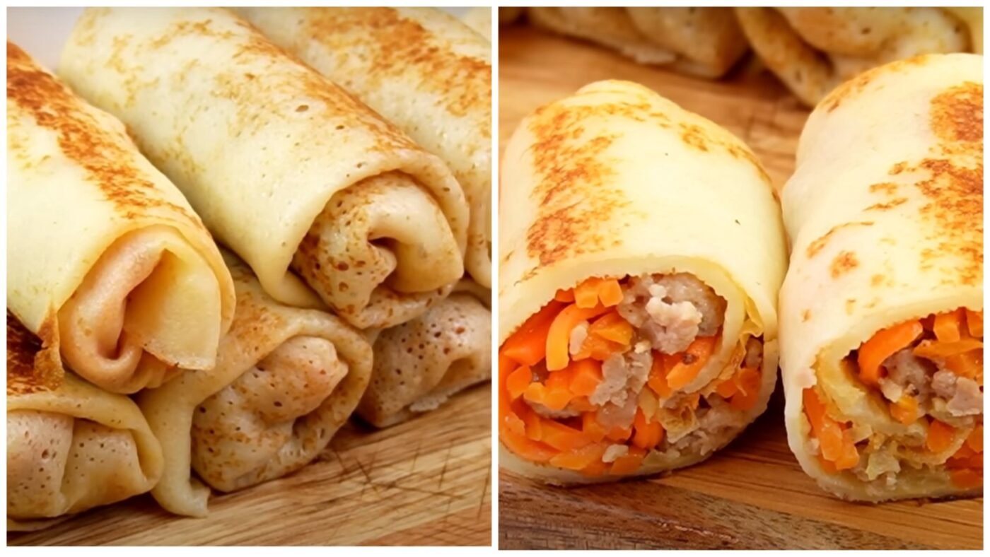 Tuck the edges of the pancakes so that the stuffing does not fall out of the roll.