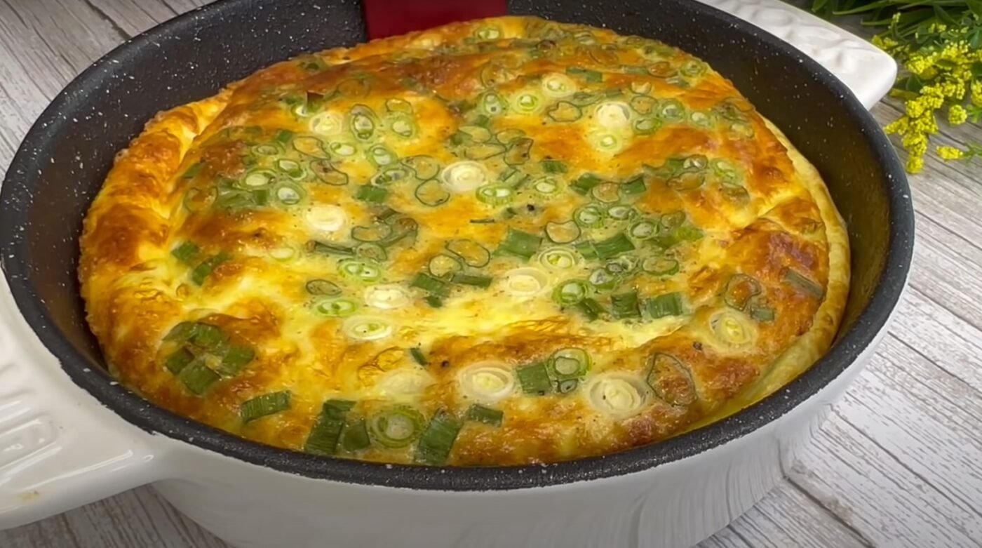It turns out a cheese casserole, which very much resembles an omelet. To the mixture of cheese, milk and eggs, you can add chopped green onions.