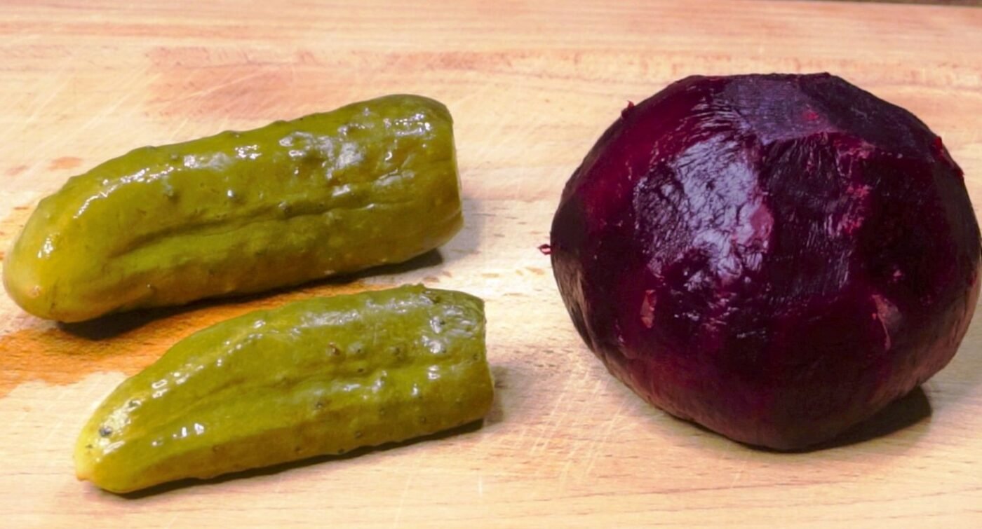 - Pickled cucumber – 1 pc;