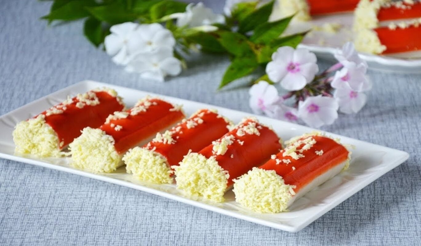 You get a simple and budget appetizer for the holiday table. This is a good way to diversify appetizers with crab sticks.