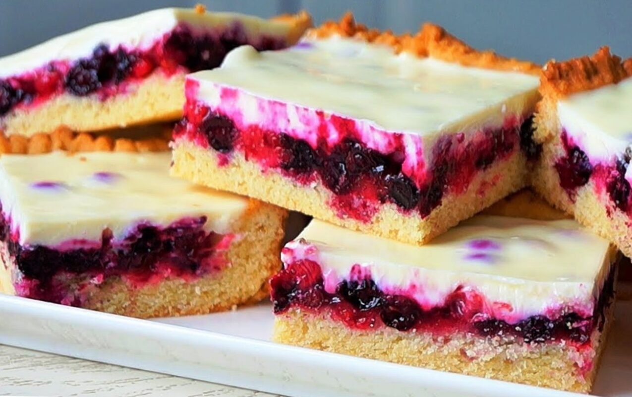 After baking, pour the berry filling over the mixture of sour cream and condensed