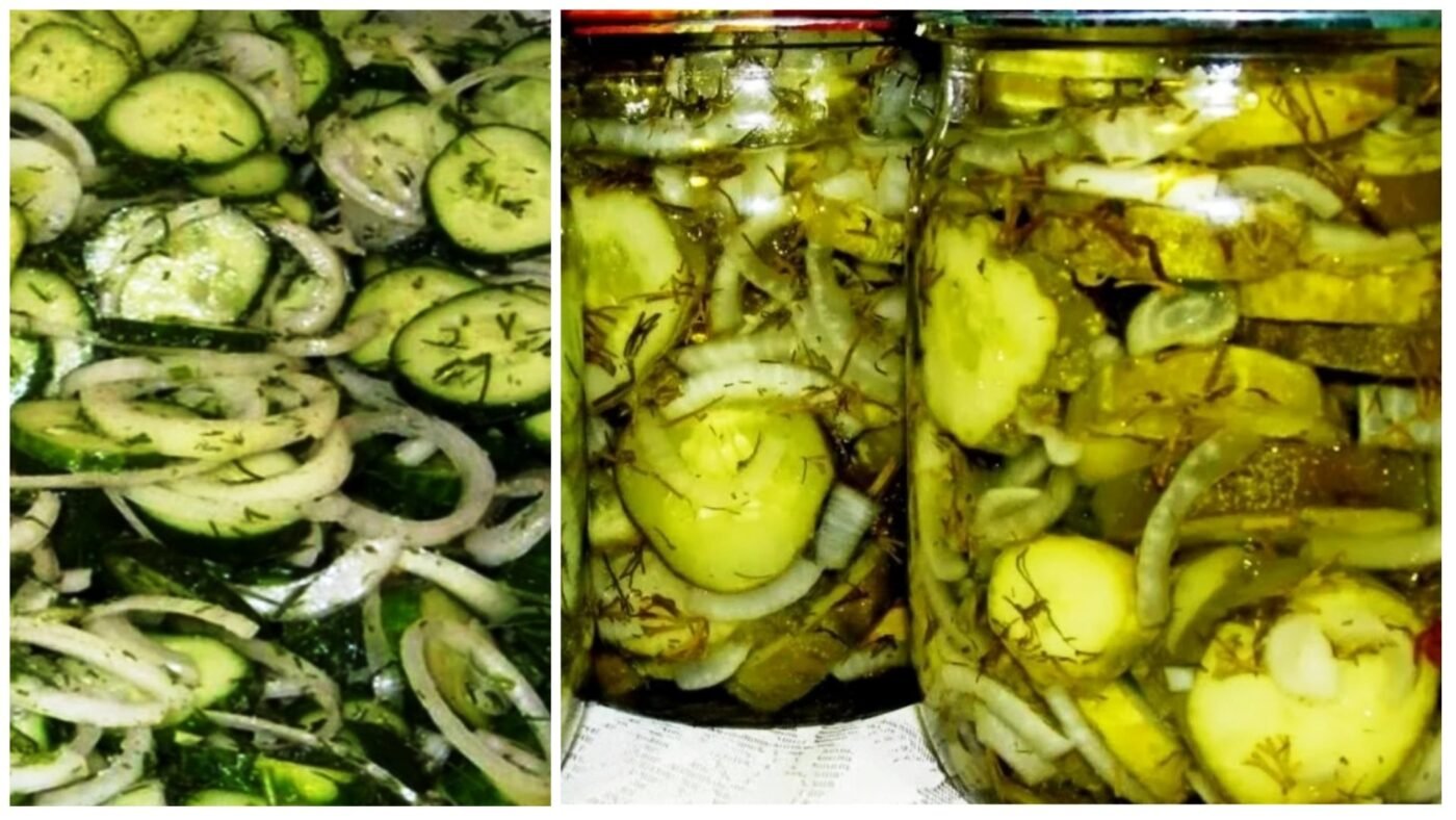 Cook cucumbers should be cooked until they change color. Then put the cucumbers with onions in sterilized jars, close tightly with lids.